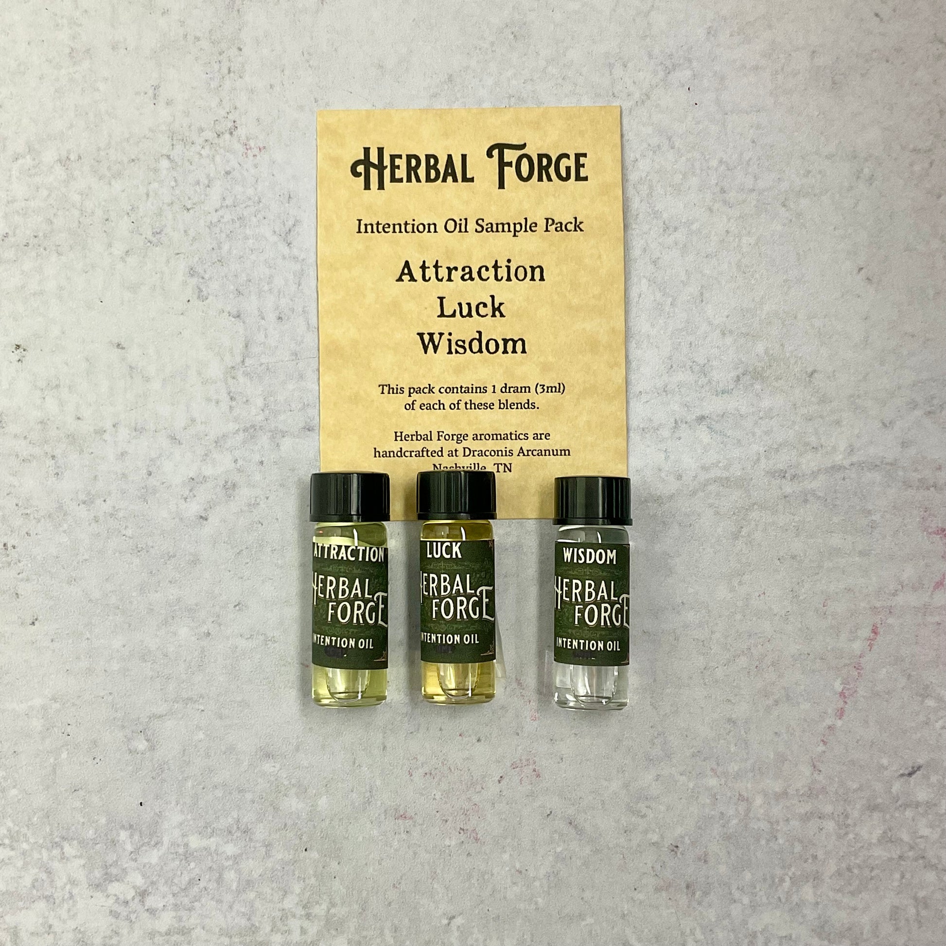 Try 3 of our Herbal Forge Intention oils in smaller size vials. Get 1 dram (3ml) of each oil.